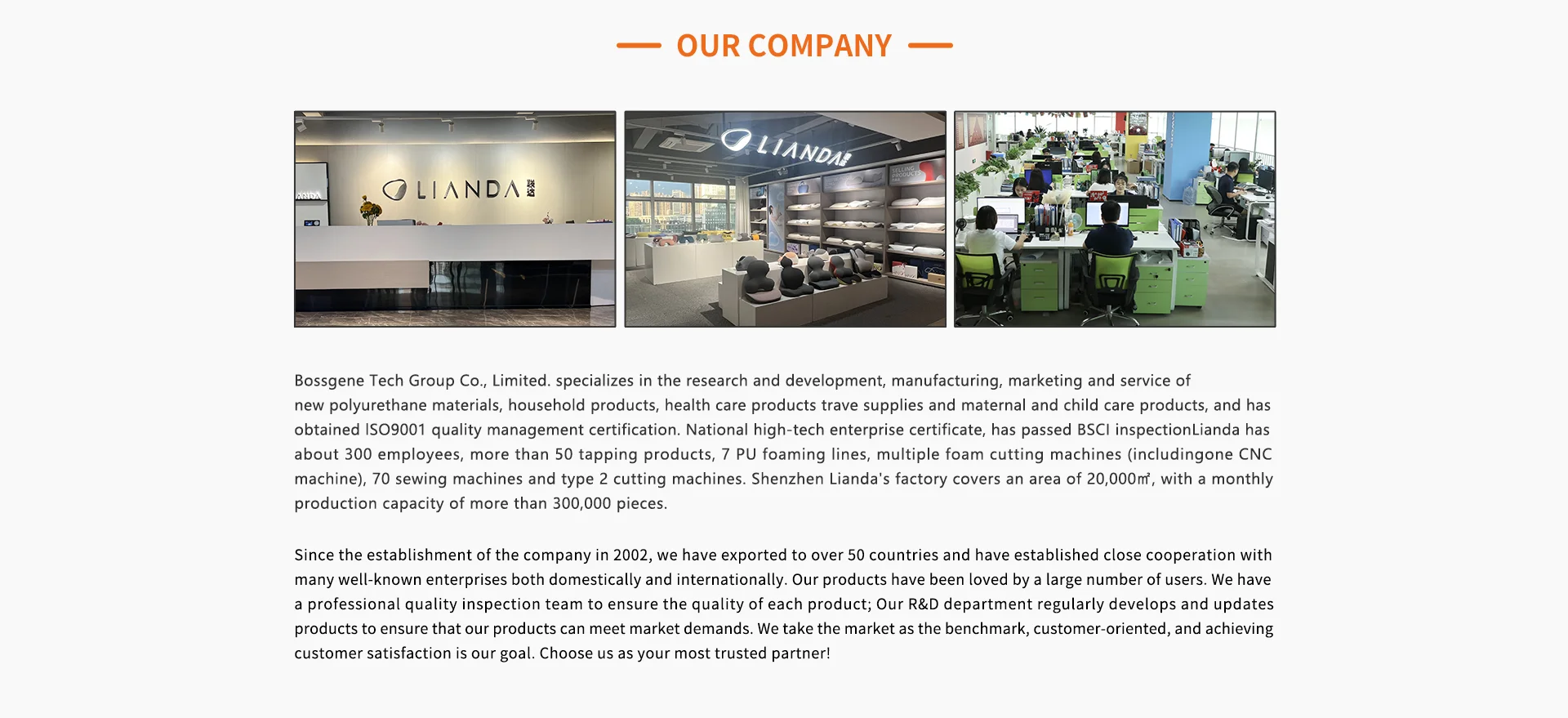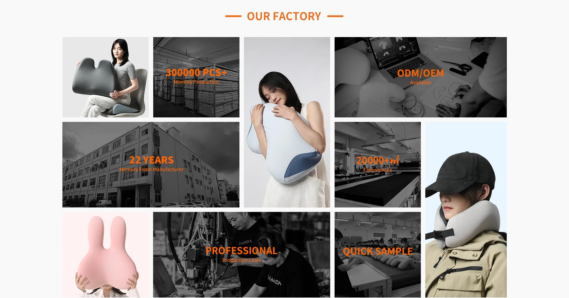 Ana ürünler:Bellek köpük yastık, bellek köpük koltuk minderi, bel yastığı, seyahat boyun yastığı, çocuk kanepe